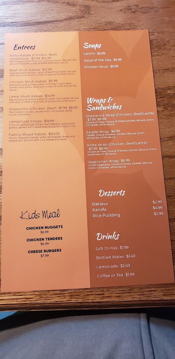 The main courses like the Beef Shawarma Wrap and Grilled Shrimp Shawarma offer a delightful blend of spices and generous portions, ensuring every dish tantalizes your taste buds.
